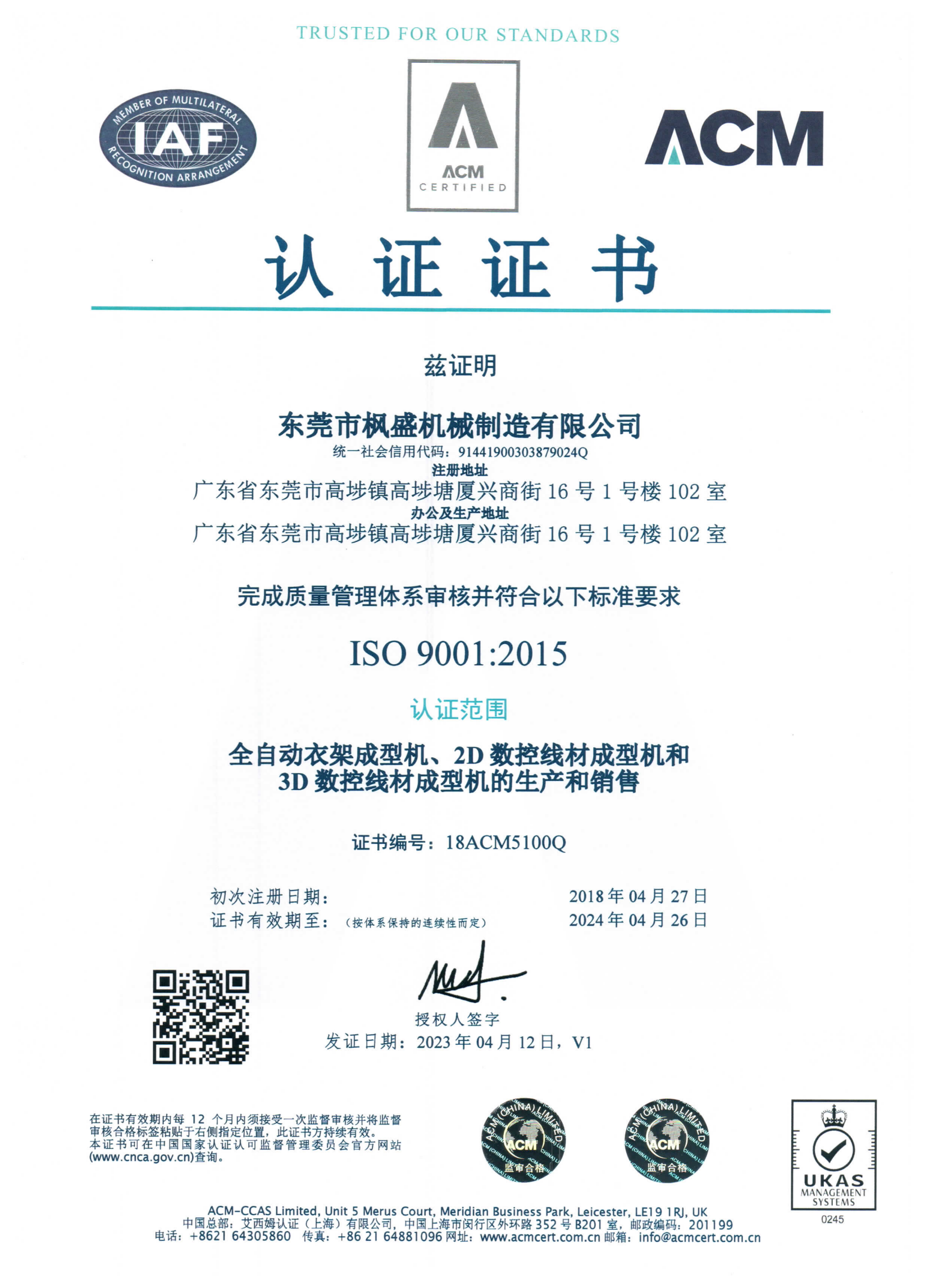 楓盛首頁(yè) 關(guān)于我們 產(chǎn)品中心 線材成型機(jī) 成品樣板 精加工車(chē)間 客戶案例 公司風(fēng)采 專(zhuān)利證書(shū) 新聞資訊 行業(yè)動(dòng)態(tài) 聯(lián)系楓盛